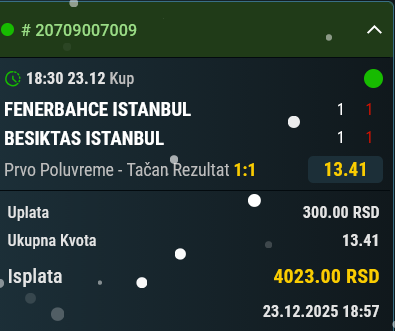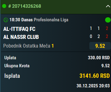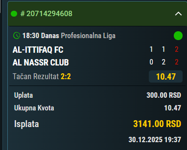 čekao 1&2+ za 20.000 din. branio sa 1:0