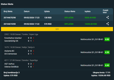 5.Februar , Fenerbahče 2-1 , kvota 20