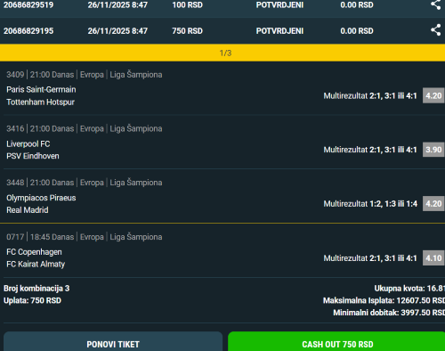 Pozdrav burazeri . Da ne bih dužio u tekstu , prokomentarisao sam u prošloj objavi šta je prošlo a šta ne. Idemo dalje. Za ovu objavu odabrao sam nekoliko mečeva gde smatram da vredi pojuriti pobedu favorita uz GG . Napisaću par tiketa koje sam uplatio na ovaj tip igre. Naravno kada pogledte statistiku izbacite sumnjive mečeve . Lepe su kvote za dubl ili tripl pa to i preporučujem. Kao profilnu sliku postavio sam tiket sa 7 mečeva. Tip igre pobeda favorita uz GG . Na tiketu se nalaze 2 meča koja kreću od 14h - po meni to su i 2 najrizičnija meča na tiketu. Ko ne voli prevelik rizik , može da proba na ostalih 5 mečeva sistem 3/5 ili 2/5 . U tom slučaju je i verovatnoća prolaza tiketa veća. Ukoliko se neko odluči da isprati sistem sa slike , napomenuću da je za eventualnih 5 pogodaka min. dobitak 11.8 puta ulog na sistem. Ovo sam uplatio i kao 4/7 gde je za 4 pogotka min. dobitak 2 puta ulog na sistem. Moj rezon za 2 sistema je taj što ako prođu 4 meča , vraćam ulog sa oba sistema . ako bi prošlo 5 zarada je i te kako dobra. Naravno , treba sportske sreće za prolaz ovog tipa igre i na 2-3 meča ali rizik je sastavni deo igre pa idem sa ovim varijantama. Napisao sam da su mi mečevi od 14h najumnjiviji . Na ostalih 5 sam odigrao sistem 3/5 i 1 tiket u glavu , kvota 262.70 Što se kaže , za svaki slučaj ... Ovih 5 mečeva će se nalaziti i na tiketima sa manje rizičnim tipovima igre. U toku dana ću promeniti profilnu sliku i napisati par konkretnijih predloga na nešto manje rizične tipove igre. Da se vratim na ova 2 meča od 14h. Sumnjivi su mi ali ima nekih rezona rizikovati. Ararat-Armenia nam je dobro poznat tim. Šampion je trenutno u lošoj formi , danas ima nezgodnog protivnika. Možda je najbolje ovaj meč izbeći. Ipak . znamo da je Ararat u kvalifikacijama LŠ ispao od Omonije, očekujem da se posveti prvenstvu. Ko je na Burazzersu duže , zna da smo na Ararat hvatali i velike kvote za 1&GG prvo , 16GG drugo. Ukazaću mu poverenje danas ali na manji ulog. Al Tadamon takođe u lošoj formi . Nije jedan od timova čije golove jurim u Kuvajtu. Obzirom na protivnika , očekujem pobedu ovog tima . Što se tiče međusobnih od 2013. - 2017. 7 mečeva ni jednom nije prošao tip GG. Možda je vreme za GG zato i rizikujem s tipom 16GG . Na oba meča od 14h tip 1&GG , kvota dubla 14.62 uplaćeno zbog vremenskog termina. Takođe i meč u Belgiji će biti dosta neizvestan. I na ovom meču je tip 1&GG prilično rizičan ali ima i rezona rizikovati - ako uporedim meč Leuven - St. Truiden s mečevima od 14 h , realno u Belgije manji rizik pojuriti 16GG . . Nekad na najsumnjivijim mečevima razni tipovi igre prođu , a na sigurnijim ne. Zbog toga ovaj vremenski dubl 14.62 a oba meča sam iskombinovao u dublovima sa Leuvenom 1&GG . To bi bilo ukratko sve što sam za sada uplatio na rizičniji tip igre .Na manje rizične tipove igre , tikete ću kasnije uplaćivati ... Na vama je da li ćete rizikovati ili izabrati 4-5 mečeva i ići na sigurnije tipove igre i lepo zaraditi. Kako god odlučite , sretno.
