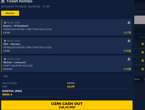 Pozdrav burazeri . Nadam se da ste nahvatili ona 2 prelaza na Bolivijce . Sem onog sistema , preporučio sam i singlove u oba smera. Samo malo sportske sreće nedostajalo da prođe i treći prelaz . Always se ispromašivao. Real Potosi me razočarao. Nakon poluvremena 0:1 očekivao sam extra prihode - bez lažne skromnosti. Real je bio favorit a mesto bar 2 gola za pobedu , dobili su 2 crvena kartona. Biće bolje , čeka nas još mečeva u Boliviji. Idemo dalje. Mene pred jutro savladao neki umor, kasno se probudih. Još pijuckam "jutarnju" kaficu. To je razlog što o mečivima na tiketu s profilne slike neću pisti analizu. Znate da volim odigrati tikete po vremenskom terminu. Svih 5 mečeva kreće od 14h . Na tiketu s profilne tip igre DI1+&D2+ , jeste rizičan za ove mečeve , zato na mali ulog. Ako neko ne vidi profilnu : Empoli - L.R. Vicenza , Basaksehir - Denizlispor , Ruzomberok - Nitra , Z. Moravce - Michalovce , Zilina - Pohronie . U drugoj varijanti tiketa išao sam s tipom igre D2+ kvota tiketa 9.52 . Odigrano samo zbog vremenskog termina i par tankih rezona. Ono što preporučujem - pogledajte statistiku za ove mečeve. Od 14:30 . 15:00 i na dalje još favorita gde je izgledniji prolaz ovih tipova igre pa iskombinujte. Da ne nabrajam mnoge sigurnije favorite od ovih. Ja ću takođe iskombinovati . Ovo su prva 2 tiketa koja sam uplatio . pa da podelim sa vama. Ko isprati neke od ovih mečeva sretno. Na mečeve od 15h planiram nekoliko tiketa, Nadam se do 14:00 , eventualno 14:30 nova profilna slika i par predloga u ovim komentarima. Ima se i nekih obaveza ali nadam se u toku dana bar 3-4 predloga po vremenskim terminima. Sretno.