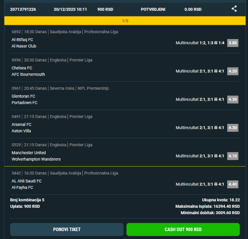 Pozdrav svima, prikljucujem se i ja tipovanju ovde pa za prvi put malo laganije kvote da probamo , vodeci se iskljucivo medjusobnim susretima izmedju ovih ekipa KORTRIJK-GENK GG3+ MILAN-TORINO 1 FREIUBURG-FC KOLN GG3+ ukupna kv. 7.65