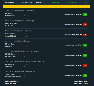 Tiket 18.41 pao na prva 2 meča, vadilo se na preostale