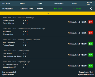 9.Februar ,3/3 na standardni mtr , kvota 75.68