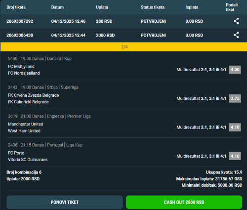 Nisam ispratio danasnje tipove vase, ali samo bih hteo da predlozim mec Thun - Young Boys da se oproba evenutano 4+ ili 5+ . Samo na osnovu prethodnih njihovih susreta, 9/10 puta doslo je 4+, a od tih 9, cak 5 puta je bilo 5+ ... Ne mora nista da znaci, mozda ce bas sad opet doci 0-2, ali verujem da bi trebalo biti golova s obzirom da je YB reseta mreze kao ludi. Eto cisto da dam predlog ako neko nije video