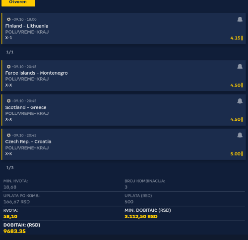 Sve 3 varijante tripla prošle. Na sve 3 utakmice prošlo i GG3+ kao i pobeda favorita&2+ , kad hoće, hoće.