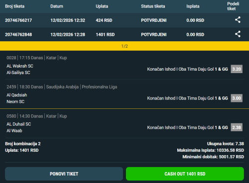 Pozdrav burazeri. Za početak dana druga liga Norveške. Odabrao sam 3 tima koja favorizujem. Asane , Sandnes i Raufos bore se za poziciju koja vodi u playoff . Jedan od ova 3 tima sigurno neće u tome uspeti. Asane je u najboljem položaju i već danas ovaj tim bi mogao da obezbedi playoff . Ako kiksne , teorija ima raznih. Realno Sandnes i Raufos su timovi koji se bore za 6.mesto. Od sva 3 tima očekujem da postignu bar po 2 gola a ništa nerealno i da prime gol. Kao profilna slika tiket s kvotom 11.13 . Tip igre GG&favorit2+ . Kao manje rizična varijanta tripl s kvotom 5.06 : Asane - Strømmen D2+ 1.70 , Sandnes - Jerv D2+ 1.70 , Stjordals Blink - Raufoss G2+ 1.75 . Mene lično ne bi iznenadilo da Stromen postigne bar 2 gola , takođe i Stjordals Blink . Zato sam na manji ulog uplatio dubl s kvotom 14.43 : Asane - Strømmen D2+&G2+ 3.90 , Stjordals Blink - Raufos D2+&G2+ 3.70 . Toliko za ovu objavu. Ko isprati sretno.